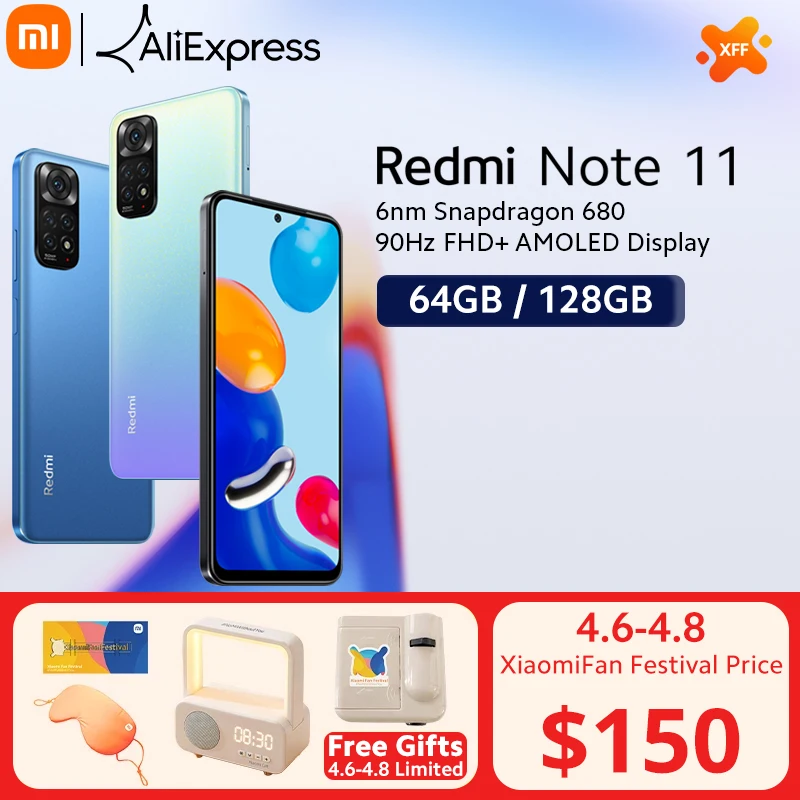 [World Premiere] Global Version Xiaomi Redmi Note 11 Mobile 64/128GB Snapdragon 680 Octa Core 33W Pro Fast Charging 50MP Camera