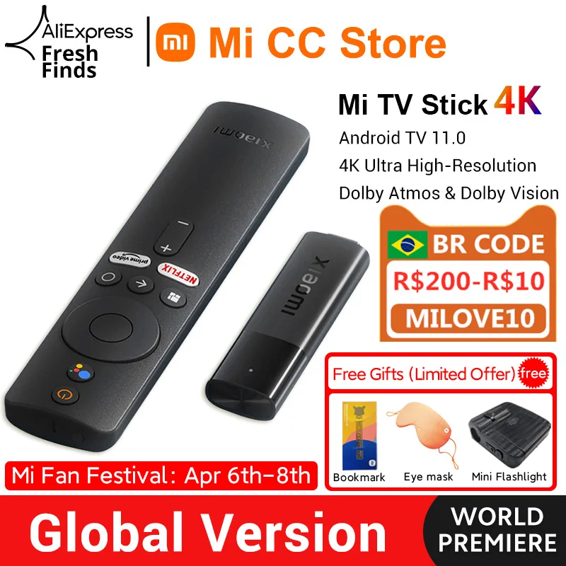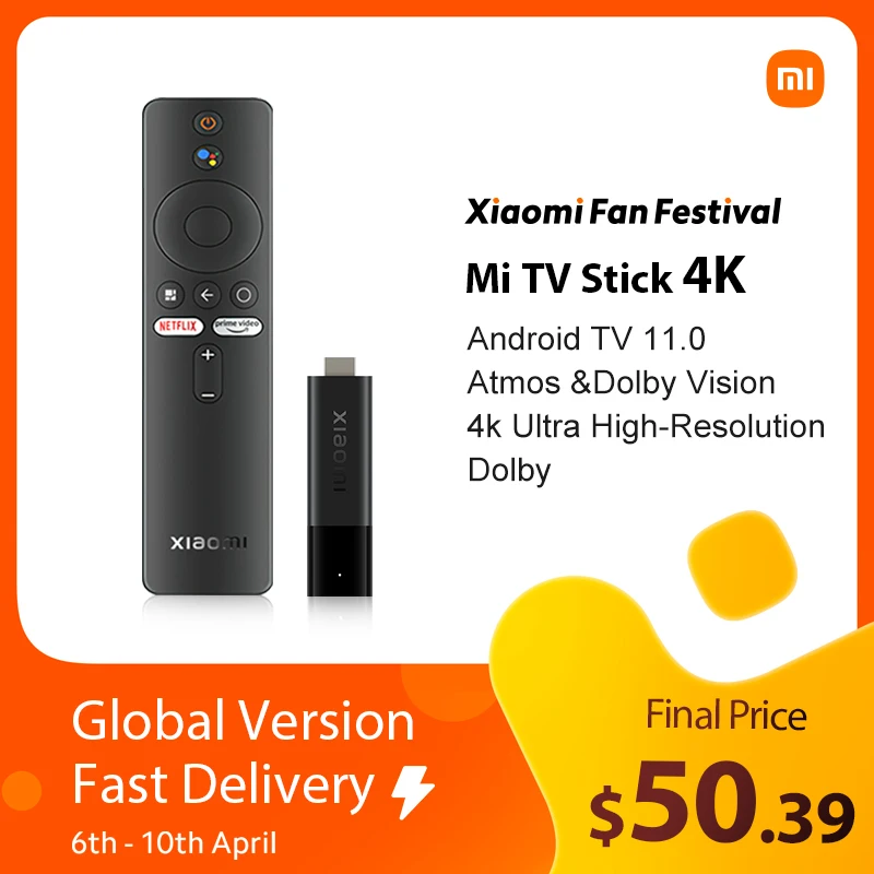 Xiaomi – clé TV Mi 4K, Android 11, 2 go/8 go, multi langue, bluetooth 5.0, Dongle TV Portable pour Streaming, première mondiale,Profitez de super offres, de la livraison gratuite, de la protection de l'acheteur et d'un retour simple des colis lorsque vous achetez en Chine et dans le monde entier ! Appréciez✓Transport maritime gratuit dans le monde entier ✓Vente à durée limitée✓Facile à rendre