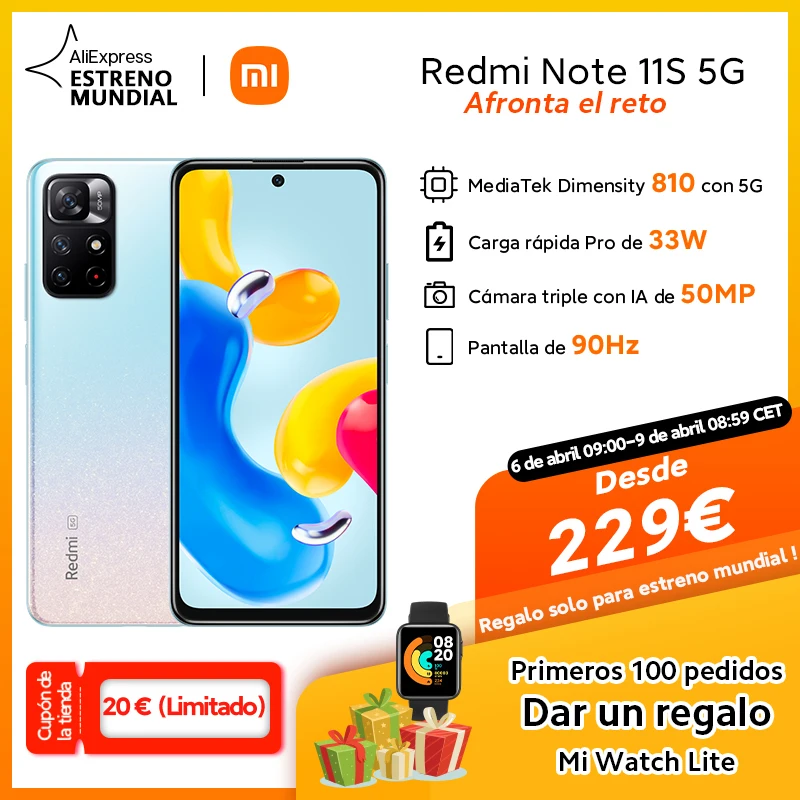 【World Premiere】Global Version Xiaomi Redmi Note 11S 5G Smartphone Dimensity 810 NFC 33W Pro Fast Charging 50MP AI Triple Camera