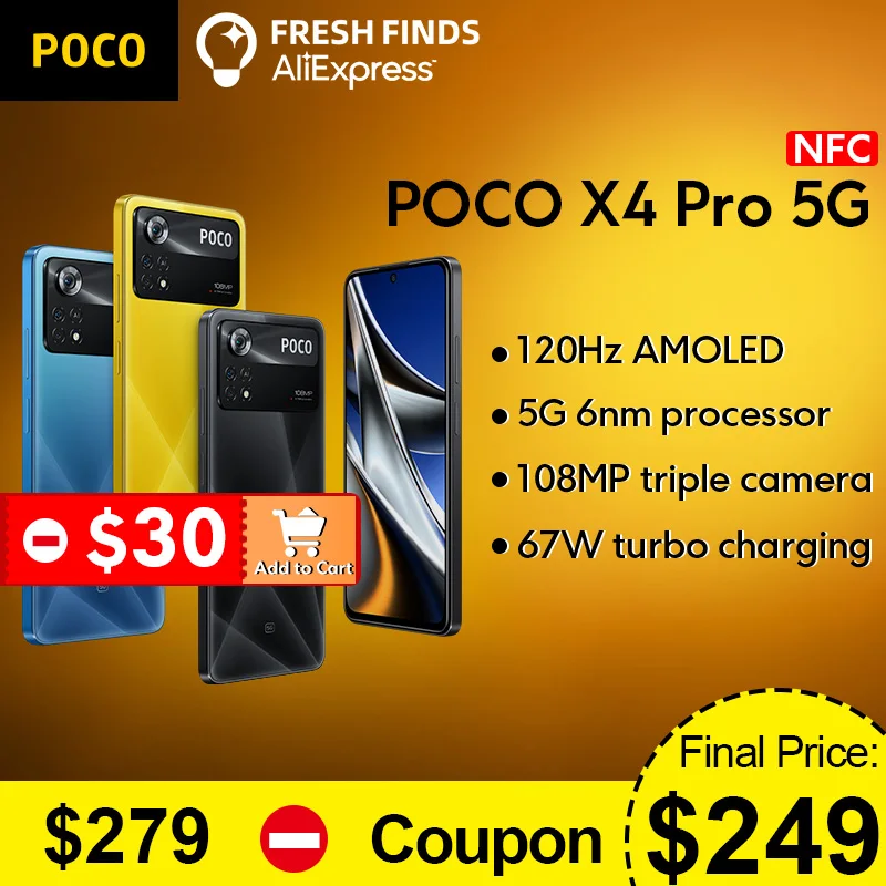Global Version POCO X4 Pro 5G NFC Smartphone 6GB 128GB/8GB 256GB Snapdragon 695 120Hz 67W Turbo Charging 108MP Triple Camera