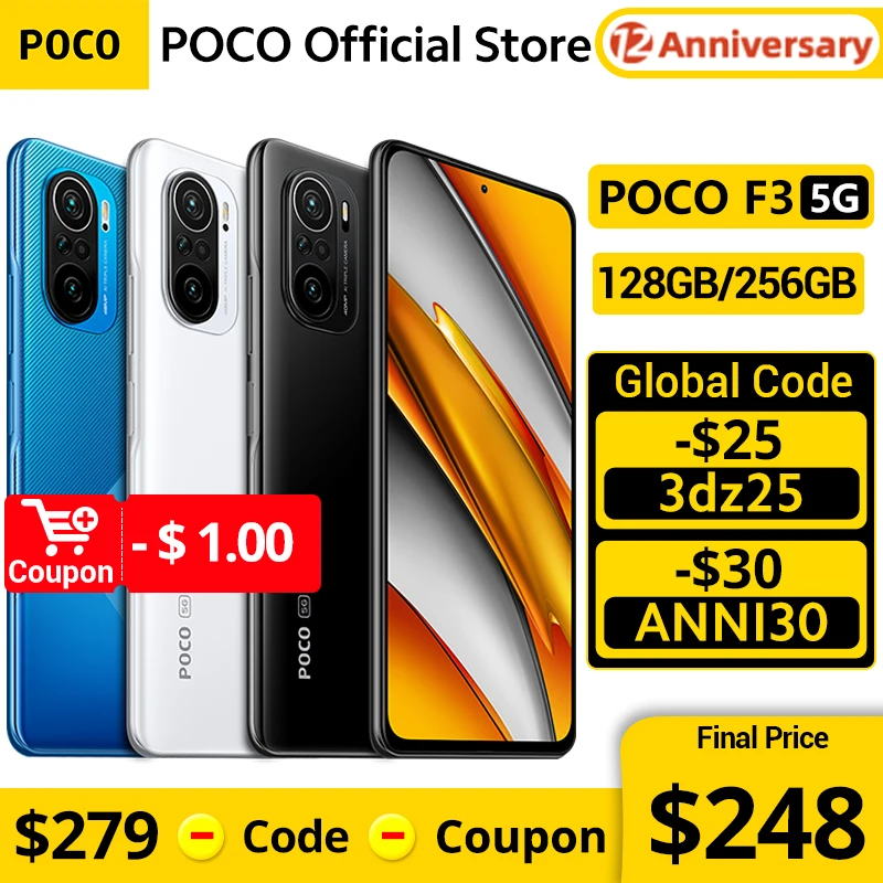 Smartphone POCO F3 version internationale, téléphone portable avec 5G, logiciel Snapdragon 870 Octa Core, 128 go, 256 go, écran 6.67 pouces, 120 Hz, E4, affichage AMOLED, 33 W, charge rapide, 48MP,Profitez de super offres, de la livraison gratuite, de la protection de l'acheteur et d'un retour simple des colis lorsque vous achetez en Chine et dans le monde entier ! Appréciez✓Transport maritime gratuit dans le monde entier ✓Vente à durée limitée✓Facile à rendre