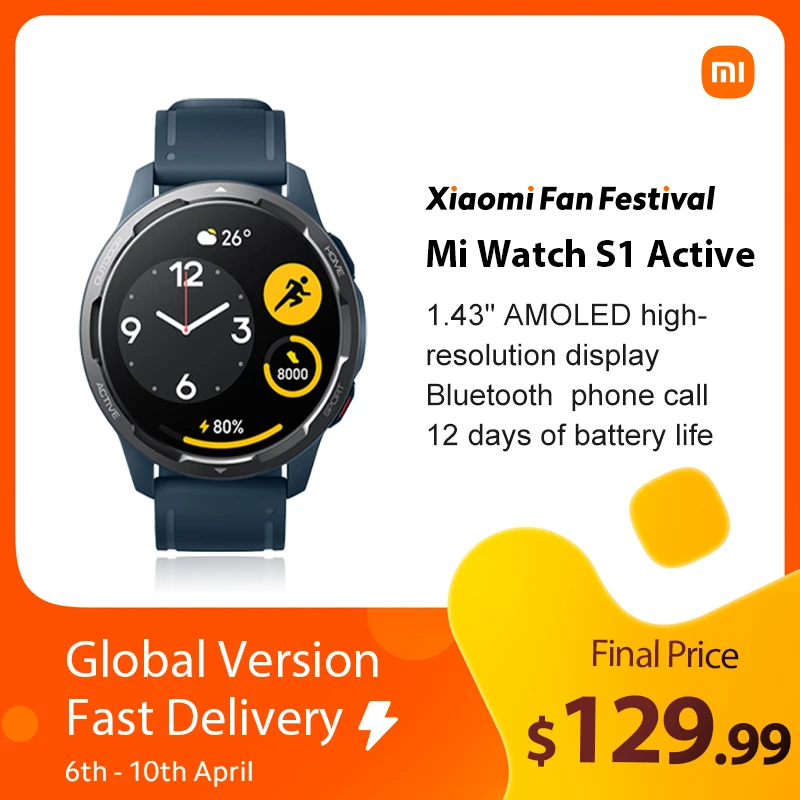 Global Version Xiaomi Mi Watch S1 Active Smart Watch GPS 470mAh 1.43 AMOLED Display Bluetooth 5.2 Heart Rate Sensor Blood Oxygen