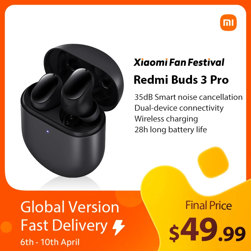 Xiaomi – écouteurs sans fil Bluetooth Redmi Buds 3 Pro TWS, casque d'écoute, double appareil, ANC, 35db, version globale,Profitez de super offres, de la livraison gratuite, de la protection de l'acheteur et d'un retour simple des colis lorsque vous achetez en Chine et dans le monde entier ! Appréciez✓Transport maritime gratuit dans le monde entier ✓Vente à durée limitée✓Facile à rendre