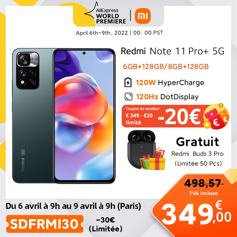 【World Premiere】Global Version Xiaomi Redmi Note 11 Pro+ 5G Plus Smartphone 120W HyperCharge Dimensity 920 120Hz AMOLED 108MP
