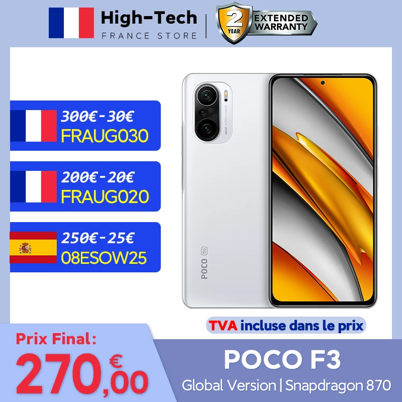 POCO F3 5G 6 Go 128 Go / 8 Go 256 Go Version globale Téléphone intelligent Snapdragon 870 6,67