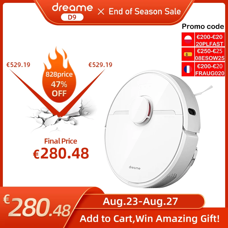 Dreame D9 Robot Vacuum Cleaner For Home Global Version 3000Pa Strong Suction Cleaner Sweeping Washing Mop APP WIFI Smart Control