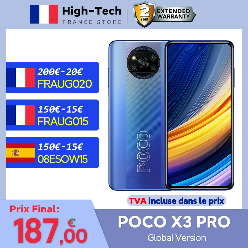 POCO X3 Pro – Smartphone Snapdragon 860, Version globale, 6.67 pouces, 120Hz, DotDisplay, caméra AI Quad 48mp, 5160 mAh, charge 33w, NFC,Profitez de super offres, de la livraison gratuite, de la protection de l'acheteur et d'un retour simple des colis lorsque vous achetez en Chine et dans le monde entier ! Appréciez✓Transport maritime gratuit dans le monde entier ✓Vente à durée limitée✓Facile à rendre