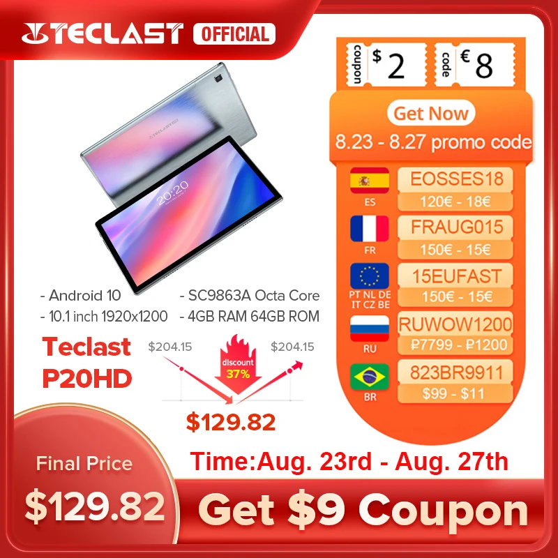 TECLAST – Tablette Android 10 de 10,1 pouces, P20 HD vitesse PC, double WiFi, résolution de 1920x1200 px, SC9863A Octa Core 4 GO de RAM et 64 GO ROM, réseau 4G AI,Profitez de super offres, de la livraison gratuite, de la protection de l'acheteur et d'un retour simple des colis lorsque vous achetez en Chine et dans le monde entier ! Appréciez✓Transport maritime gratuit dans le monde entier ✓Vente à durée limitée✓Facile à rendre