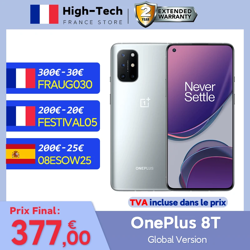 OnePlus 8 T 8 T Version mondiale Smartphone Snapdragon 865 5G 6.55 ''120Hz AMOLED affichage 48MP Quad caméra arrière 4500mAh,Profitez de super offres, de la livraison gratuite, de la protection de l'acheteur et d'un retour simple des colis lorsque vous achetez en Chine et dans le monde entier ! Appréciez✓Transport maritime gratuit dans le monde entier ✓Vente à durée limitée✓Facile à rendre