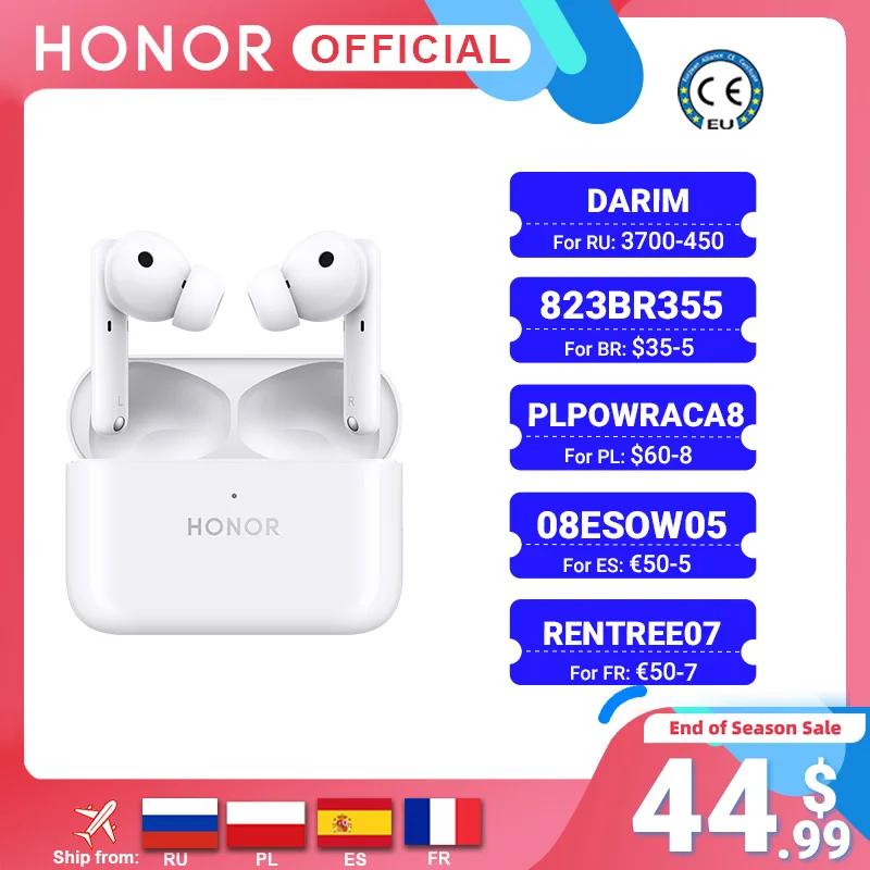 HONOR – écouteurs sans fil Bluetooth 5.2, oreillettes 2 Lite TWS AAC, suppression Active du bruit, Version globale, en Stock,Profitez de super offres, de la livraison gratuite, de la protection de l'acheteur et d'un retour simple des colis lorsque vous achetez en Chine et dans le monde entier ! Appréciez✓Transport maritime gratuit dans le monde entier ✓Vente à durée limitée✓Facile à rendre