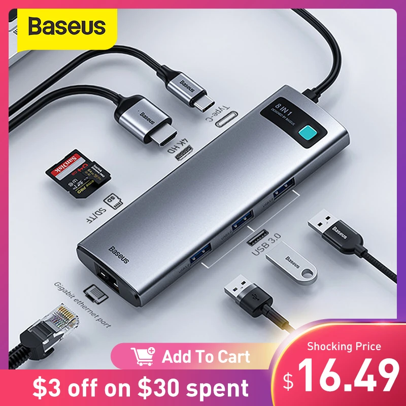 Baseus – HUB USB type c vers HDMI, adaptateur USB 3.0, station d'accueil 8 en 1 pour MacBook Pro Air,Profitez de super offres, de la livraison gratuite, de la protection de l'acheteur et d'un retour simple des colis lorsque vous achetez en Chine et dans le monde entier ! Appréciez✓Transport maritime gratuit dans le monde entier ✓Vente à durée limitée✓Facile à rendre