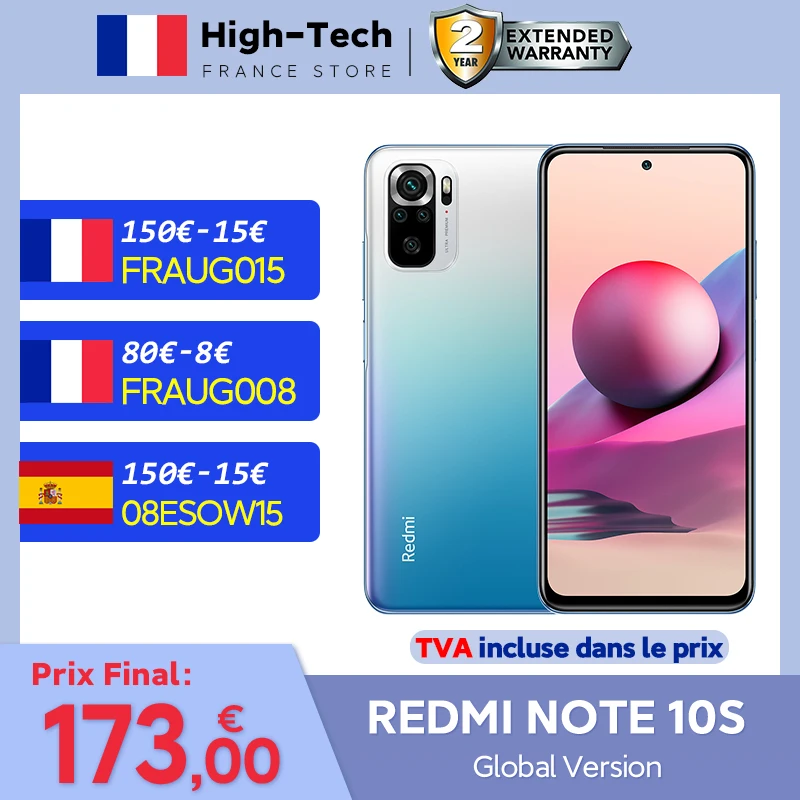 Xiaomi Redmi Note 10S 6GB128GB Version Globale Smartphone 64MP Quad Caméra 6.43
