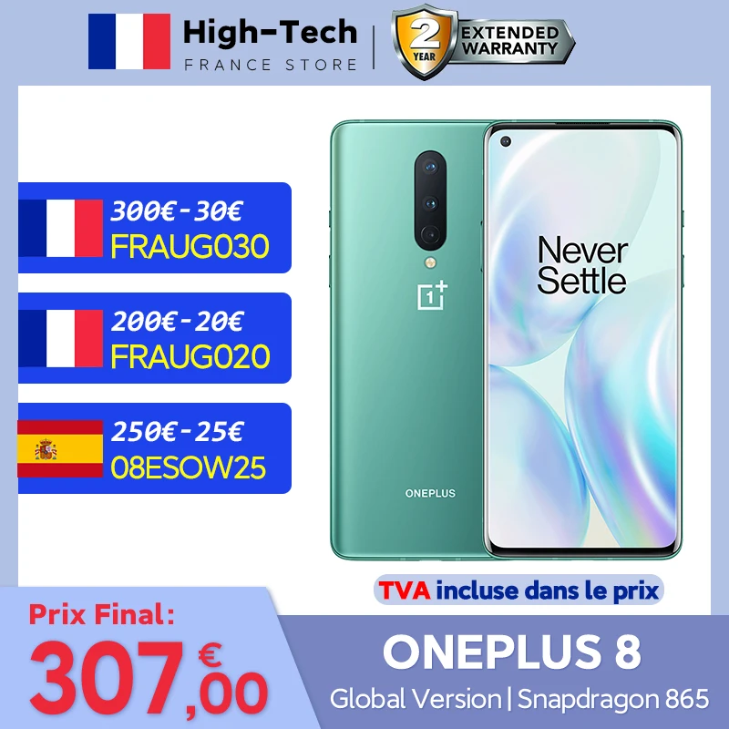 OnePlus 8 5G 8 GO 128 GO Global Version Smartphone Snapdragon 865 6.55 ''90Hz AMOLED Affichage Fluide 48MP Triple Camaras 4300mAh NFC,Profitez de super offres, de la livraison gratuite, de la protection de l'acheteur et d'un retour simple des colis lorsque vous achetez en Chine et dans le monde entier ! Appréciez✓Transport maritime gratuit dans le monde entier ✓Vente à durée limitée✓Facile à rendre
