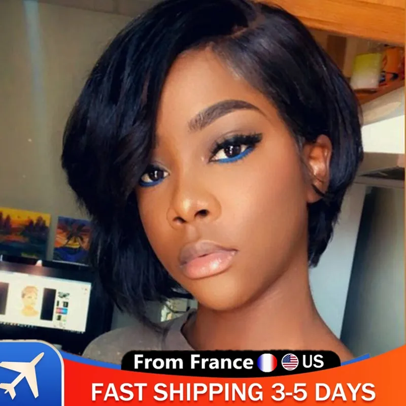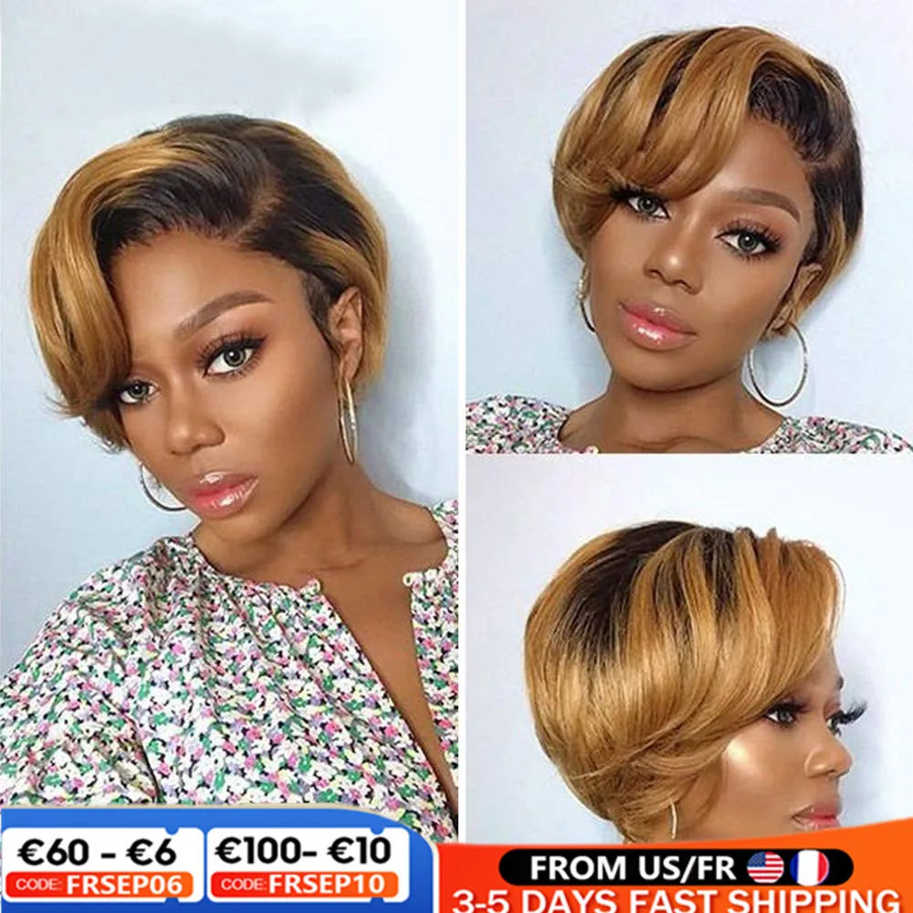 Human Hair Wigs Short Pixie Cut Wigs Straight Wig Bob Wigs With Bangs Full Machine Made Wigs For Black Women150% Density
