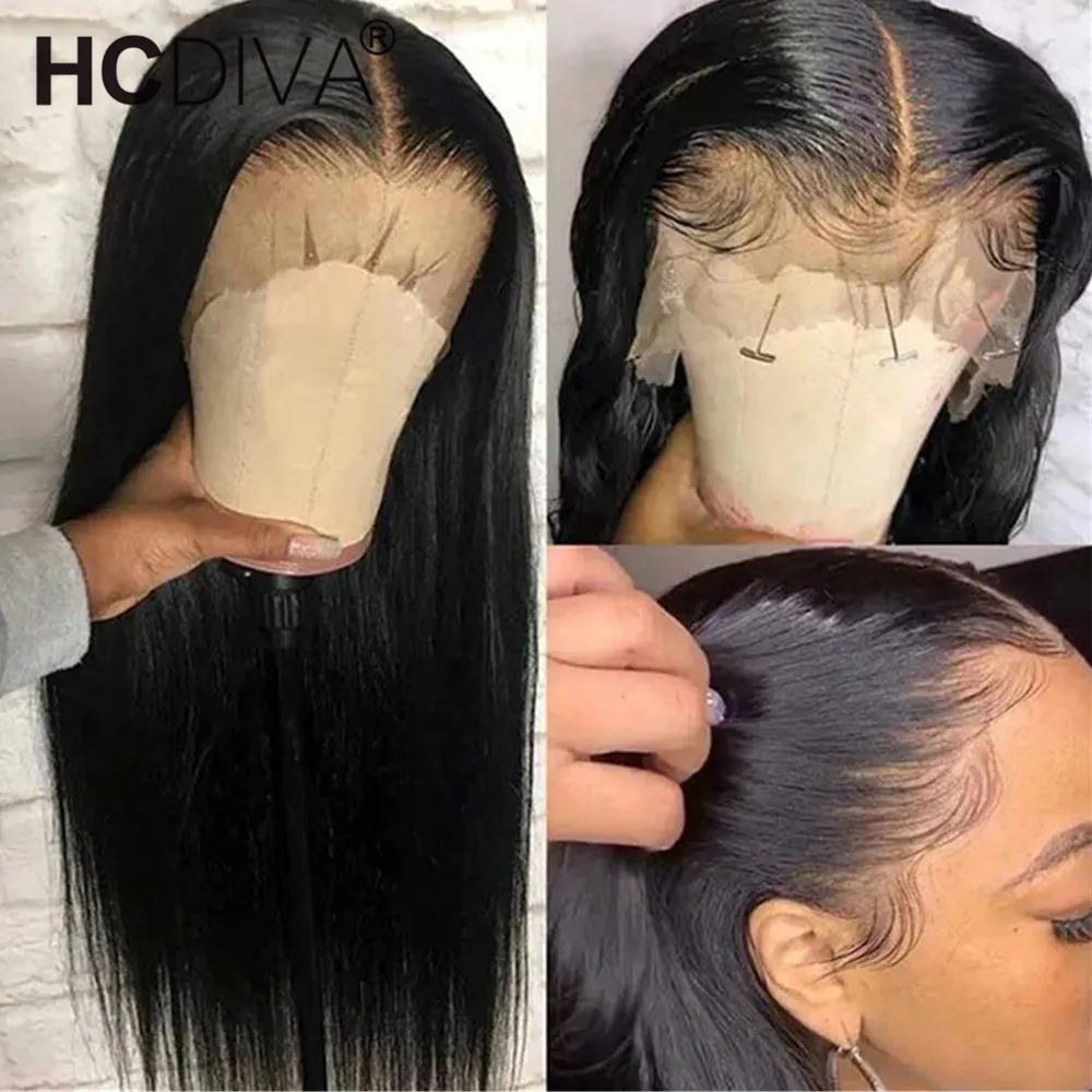 Middle Part Lace Wig 42inch13x4 Lace Front Wig T Part Lace Wig Remy Brazilian Straight Human Hair Wig Pre Plucked With Baby Hair