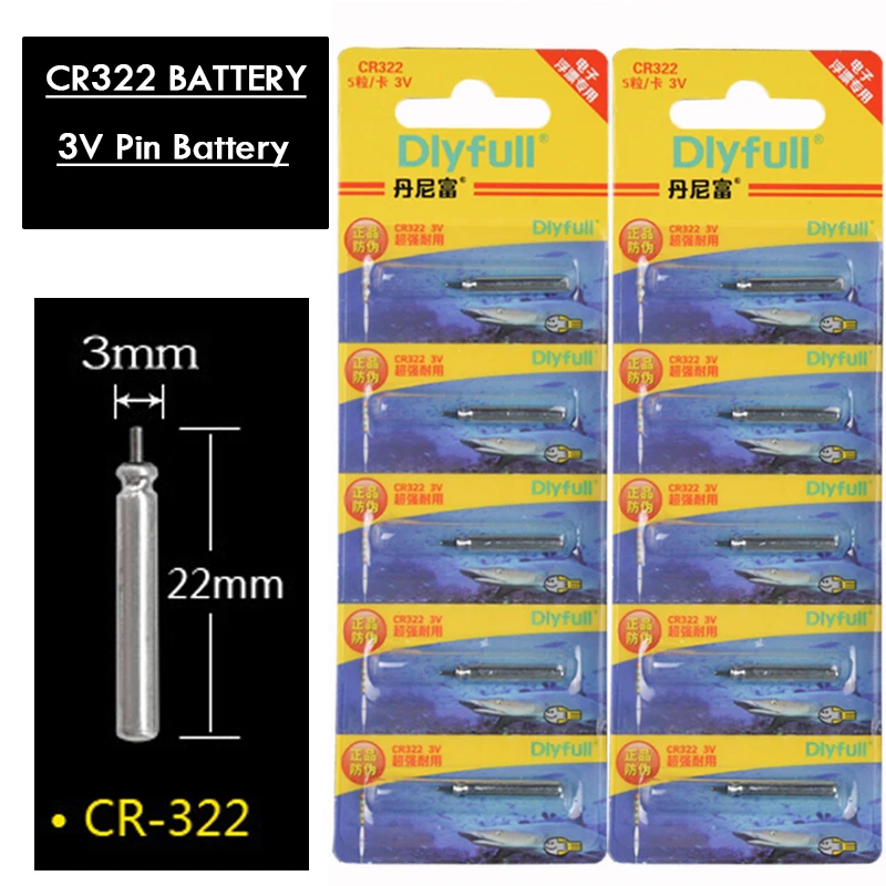 10pcs/lot CR322 Batteries Fishing Float Electric Float 3V Night Light Lithium Pin Cells Float Accessories Fishing Tools Tackles