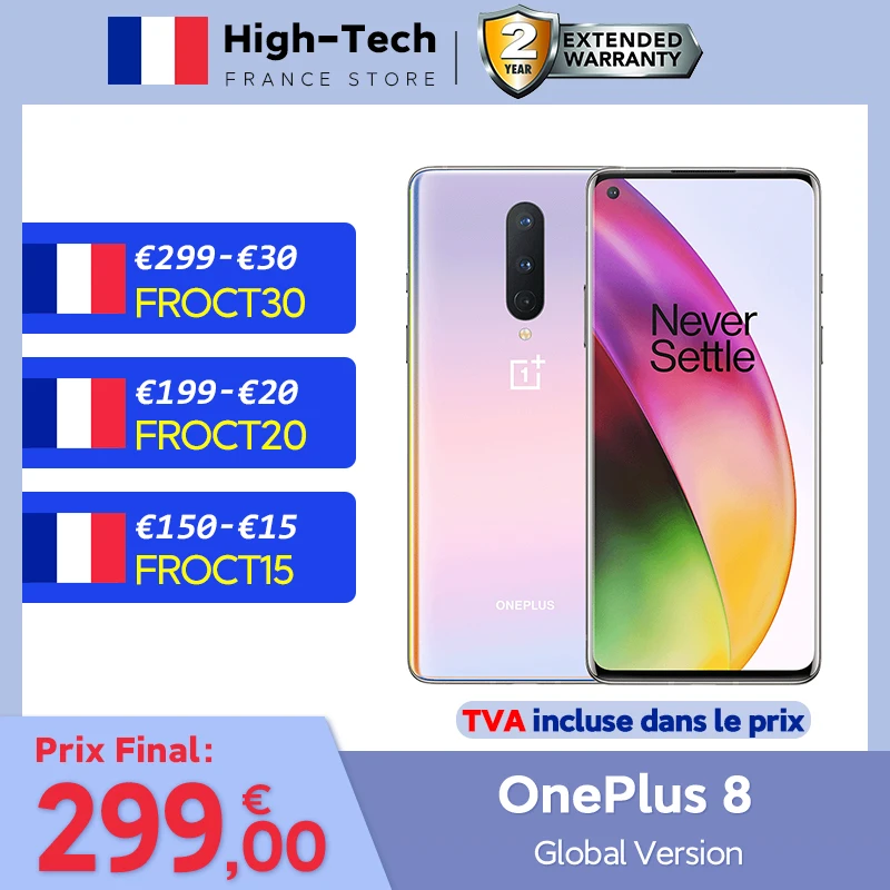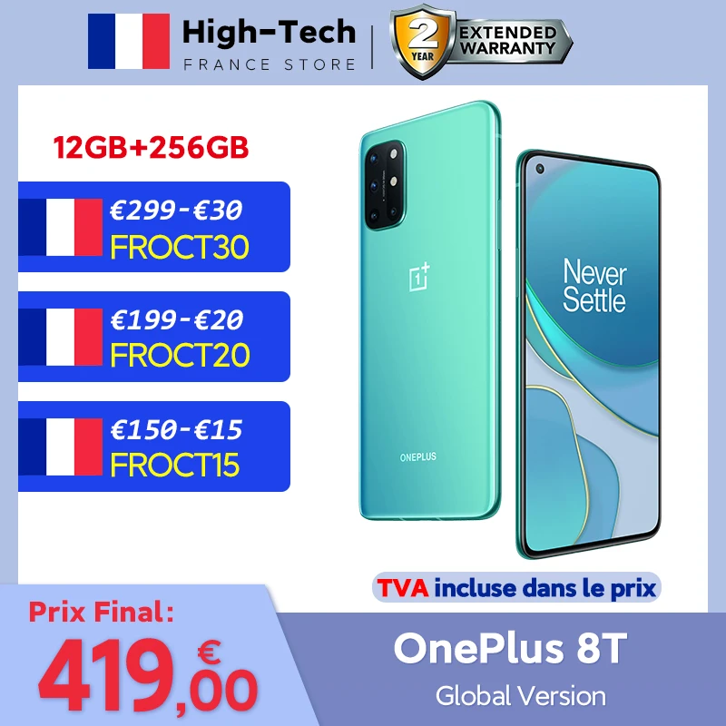 OnePlus 8 T 8 T Version mondiale Smartphone Snapdragon 865 5G 6.55 ''120Hz AMOLED affichage 48MP Quad caméra arrière 4500mAh,Profitez de super offres, de la livraison gratuite, de la protection de l'acheteur et d'un retour simple des colis lorsque vous achetez en Chine et dans le monde entier ! Appréciez✓Transport maritime gratuit dans le monde entier ✓Vente à durée limitée✓Facile à rendre