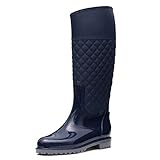 gracosy Bottes de Pluie Femme, Bottines en Caoutchouc PVC à Enfiler Imperméable Chaussures de Plage Ville à Tige Haute Boots Printemps Antidérapant Plat Bleu 37